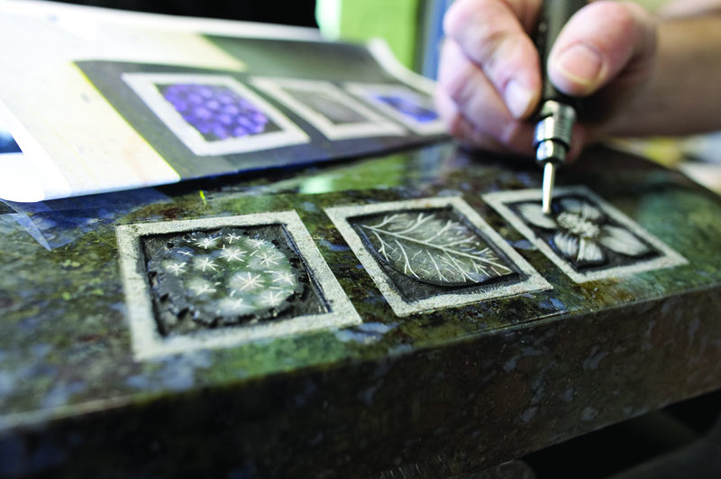 A favourite toy, football team,hobby or scene from a story book or cartoon can be carved and painted in various fine granites